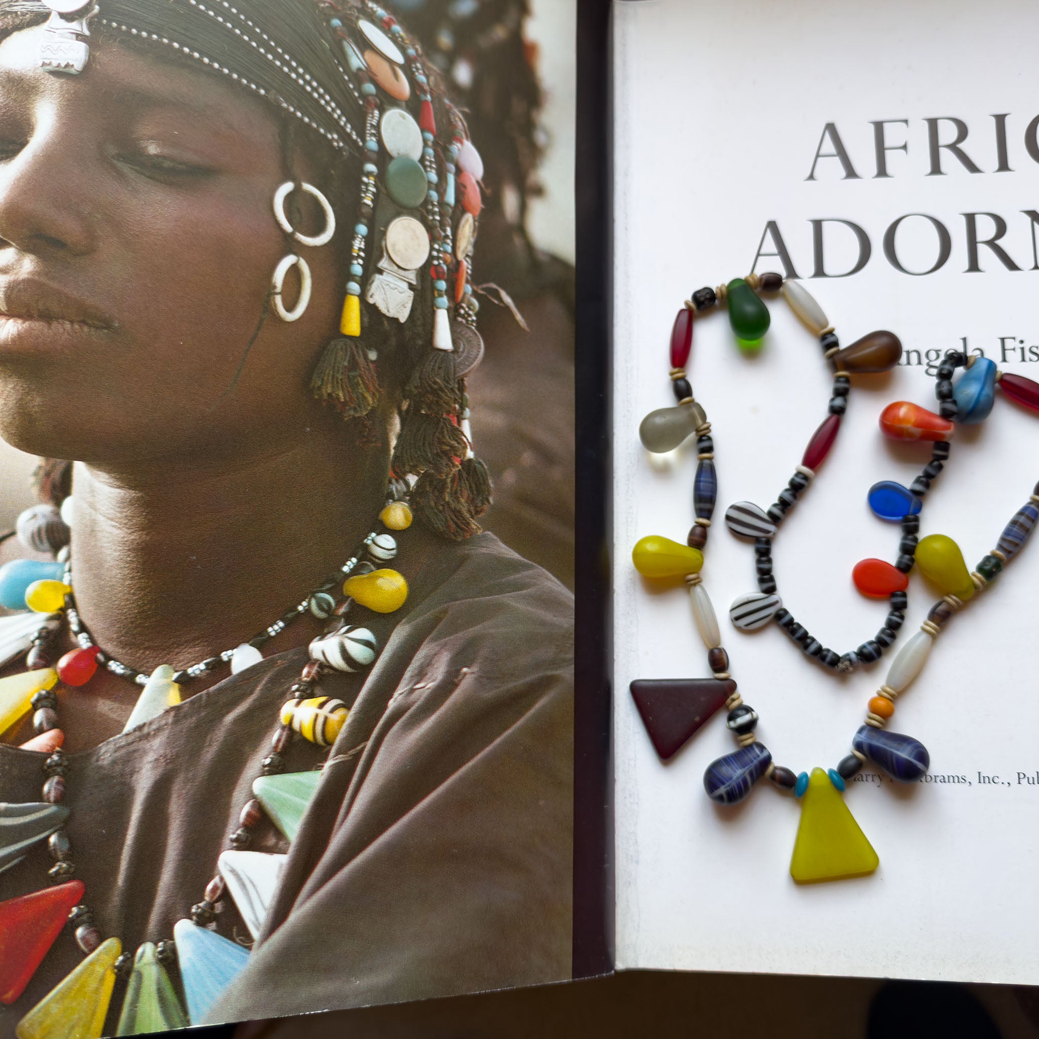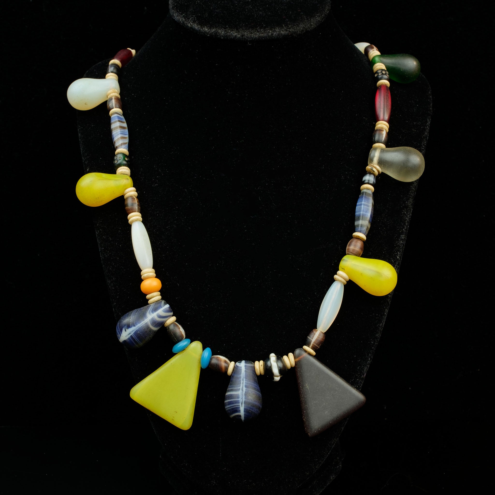 A beautiful old glass wedding necklace, made in Mali, traditionally passed from mother to daughter on her wedding day. Each necklace is unique as it was strung individually with specially chosen beads for the wearer.