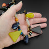 The glass beads were made in Bohemia in the former Czech Republic and were used throughout Africa for trade. The hourglass shaped beads were especially prized by Fulani women due to their resemblance to the female form.