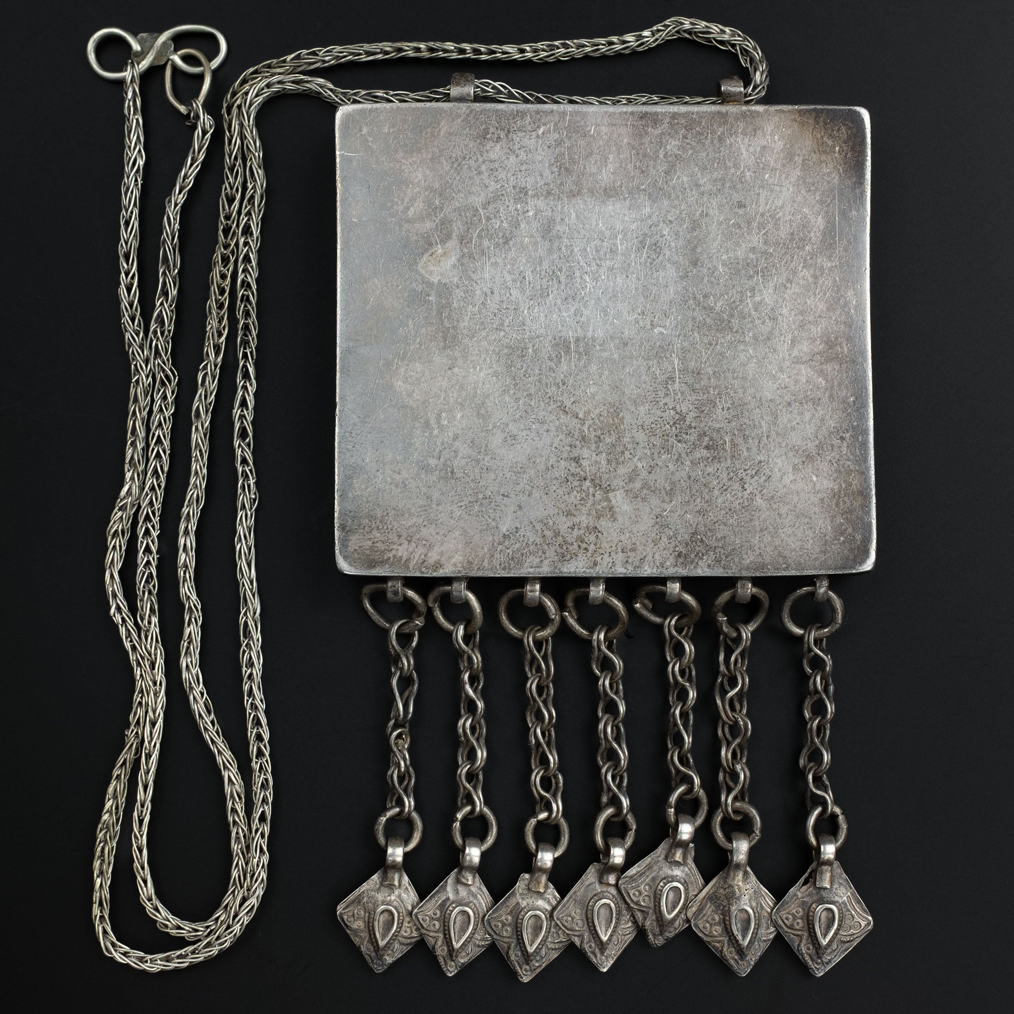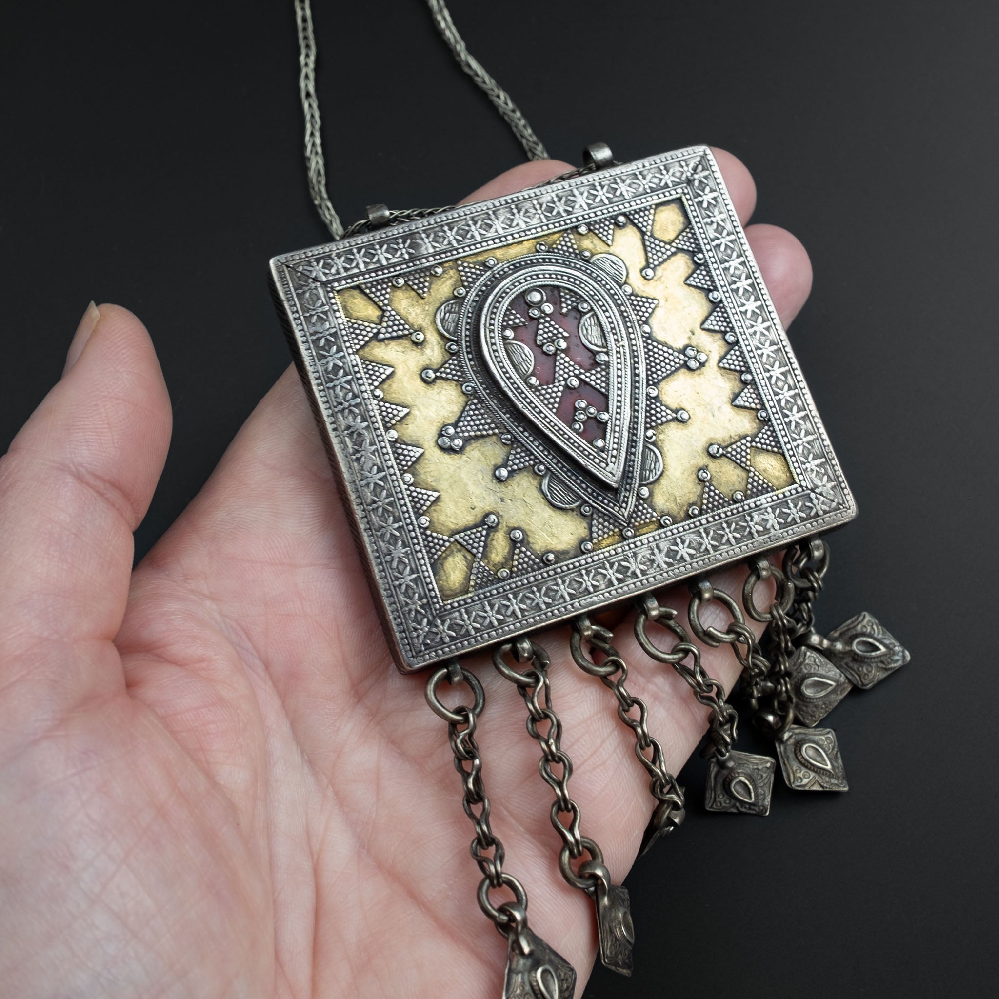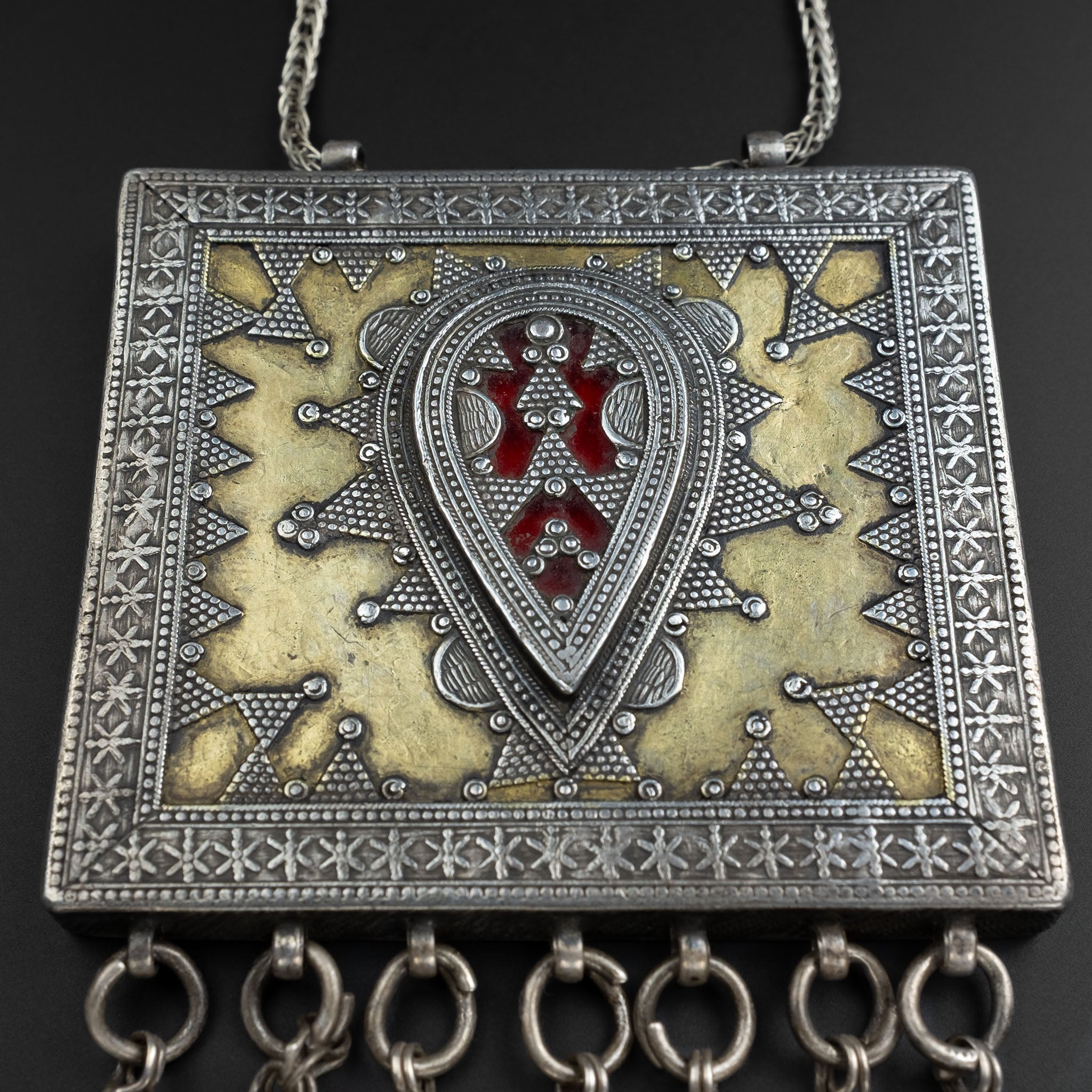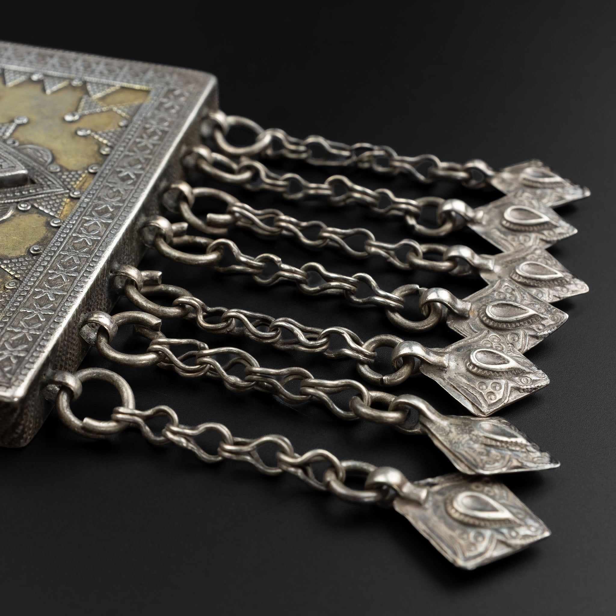 Beautiful Antique Silver Gilded Kazakh Pendant & Chain, Central Asia