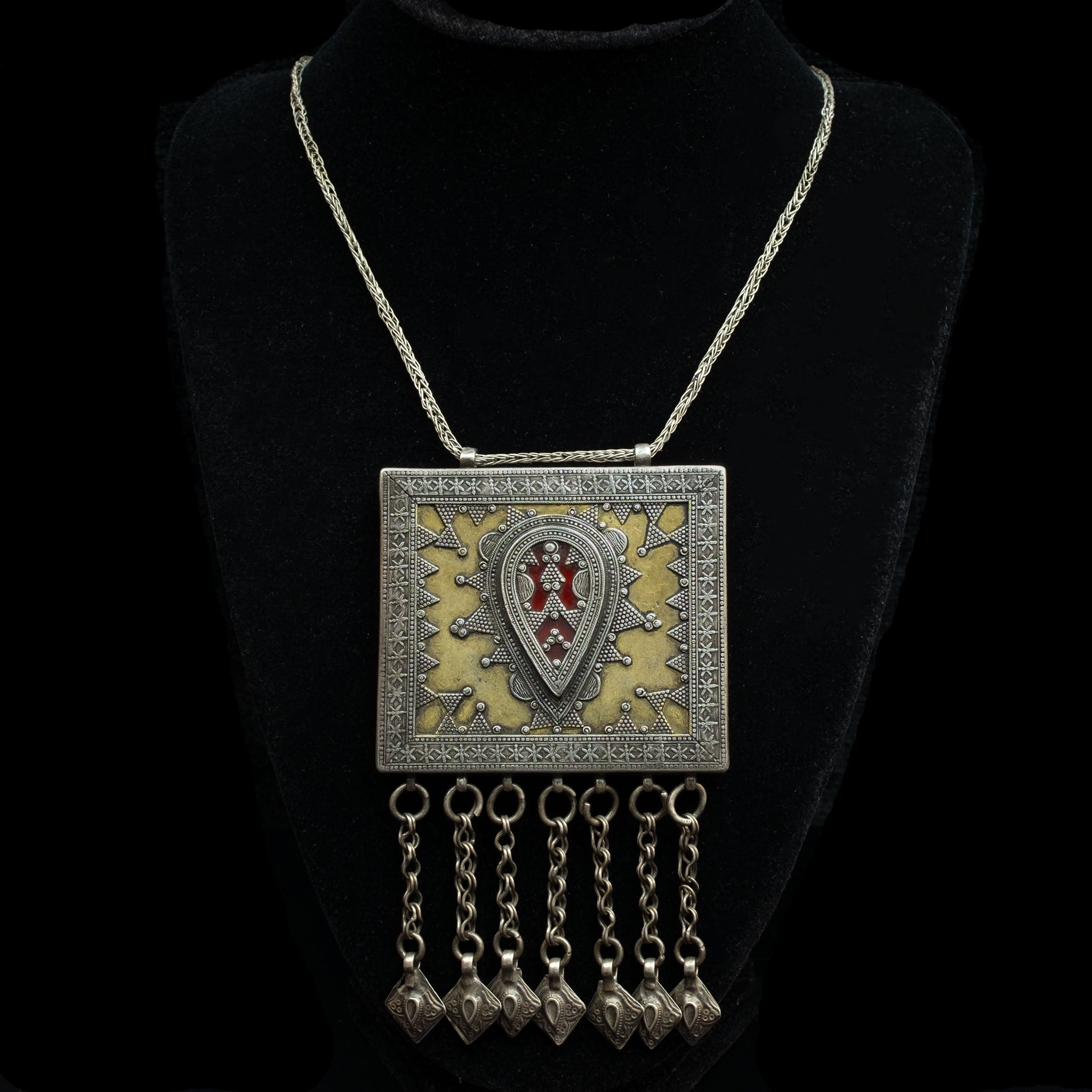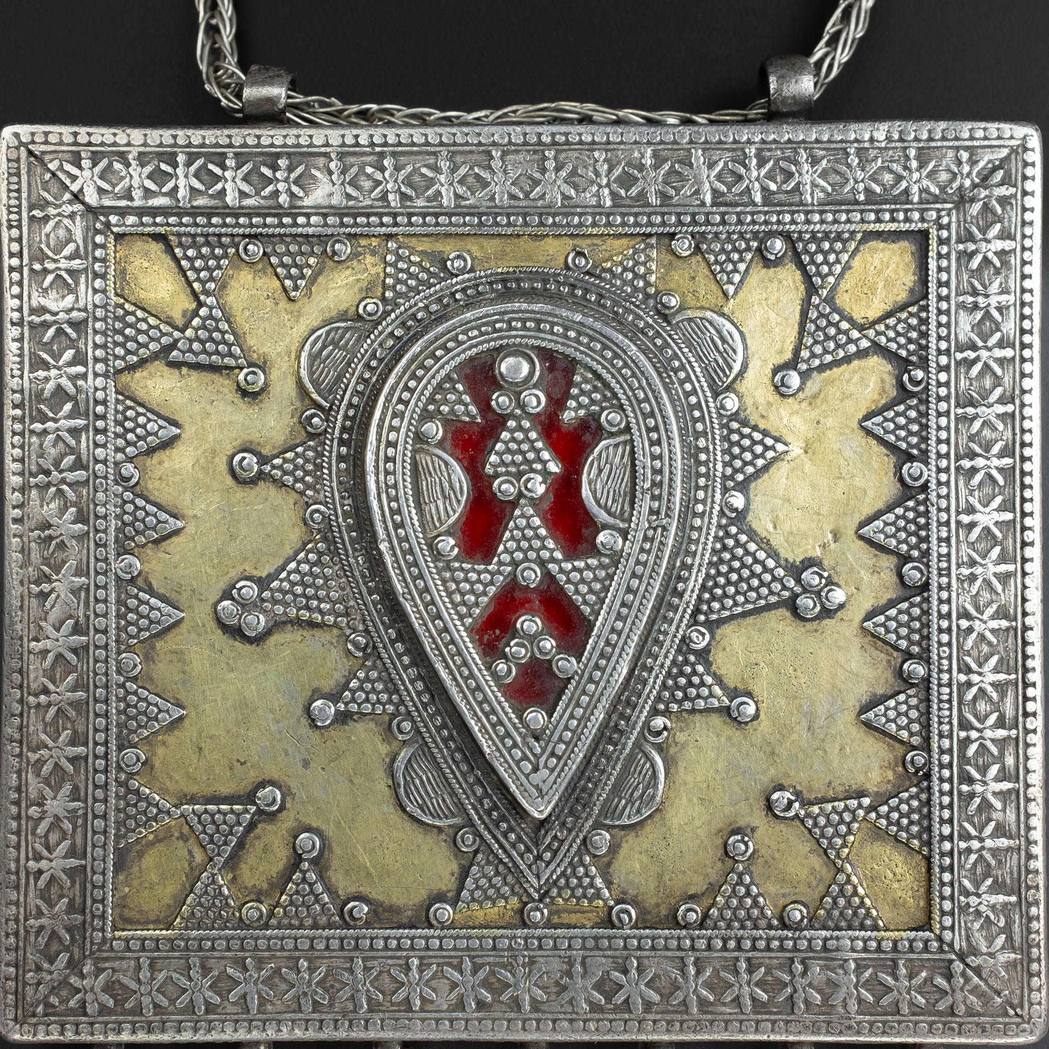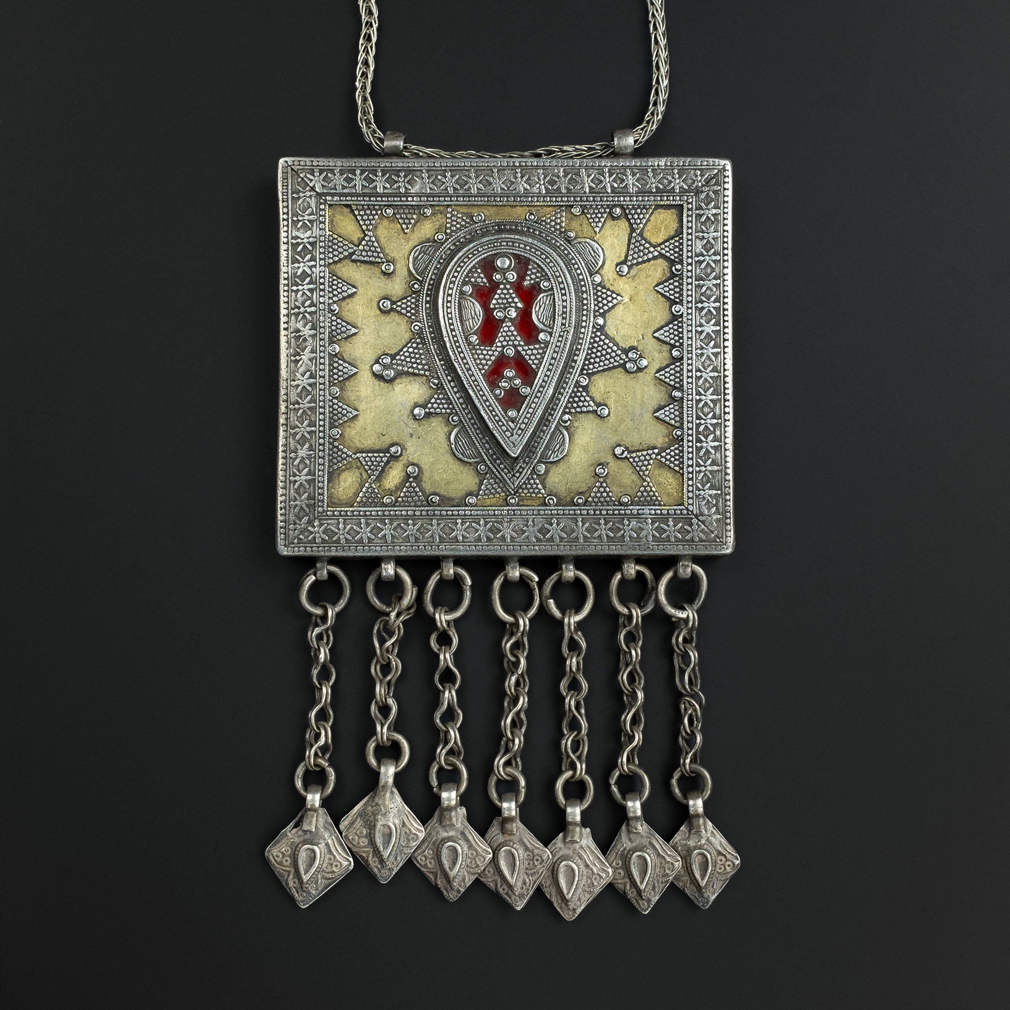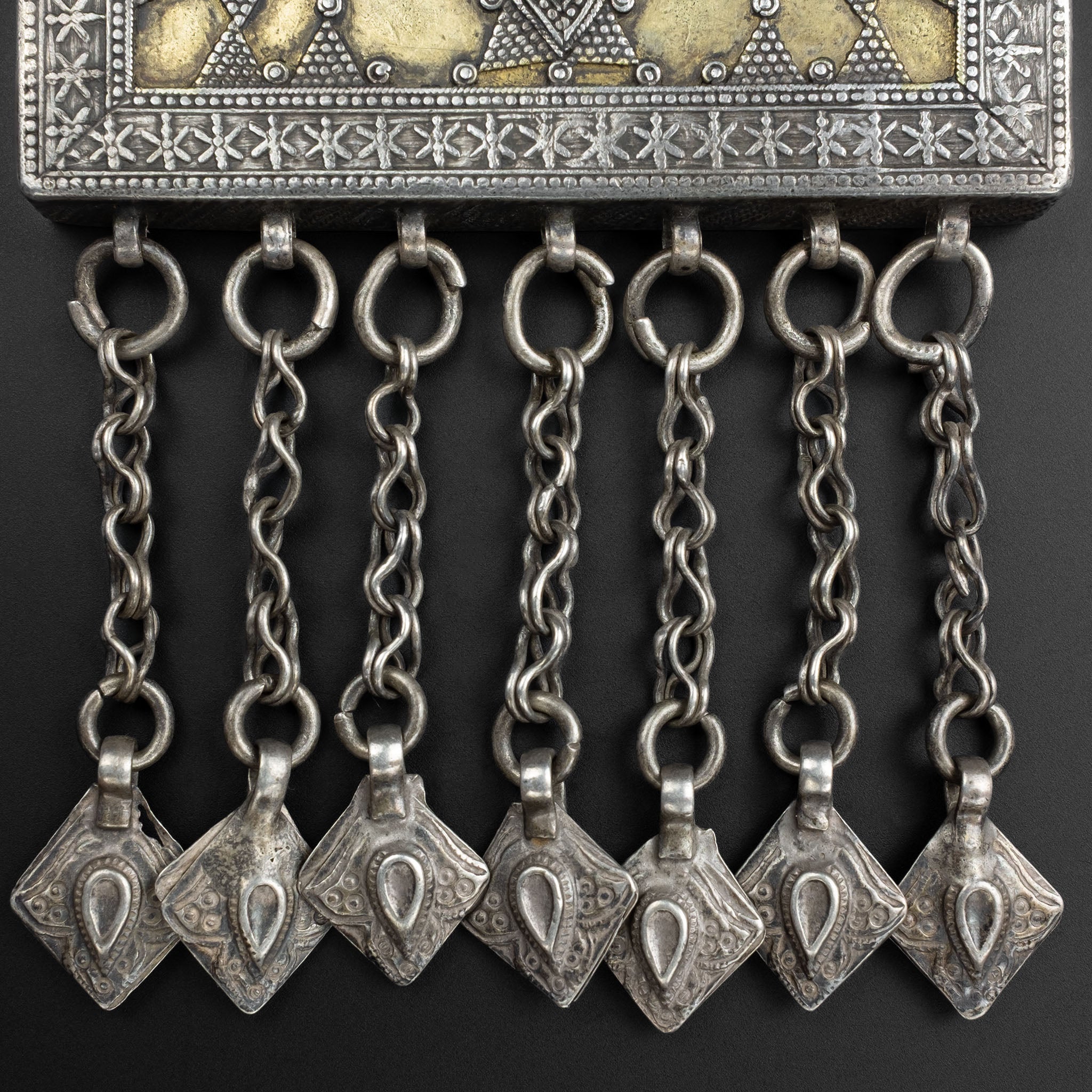 Beautiful Antique Silver Gilded Kazakh Pendant & Chain, Central Asia