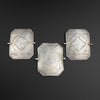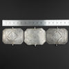 The central design of the two identical plaques features a grid pattern, possibly a 'magic square' with words, symbols and numbers, surrounded by circular and linear etchings. The third plaque has very elaborate etching, a work of painstaking art. They all have wonderful patina due to age.