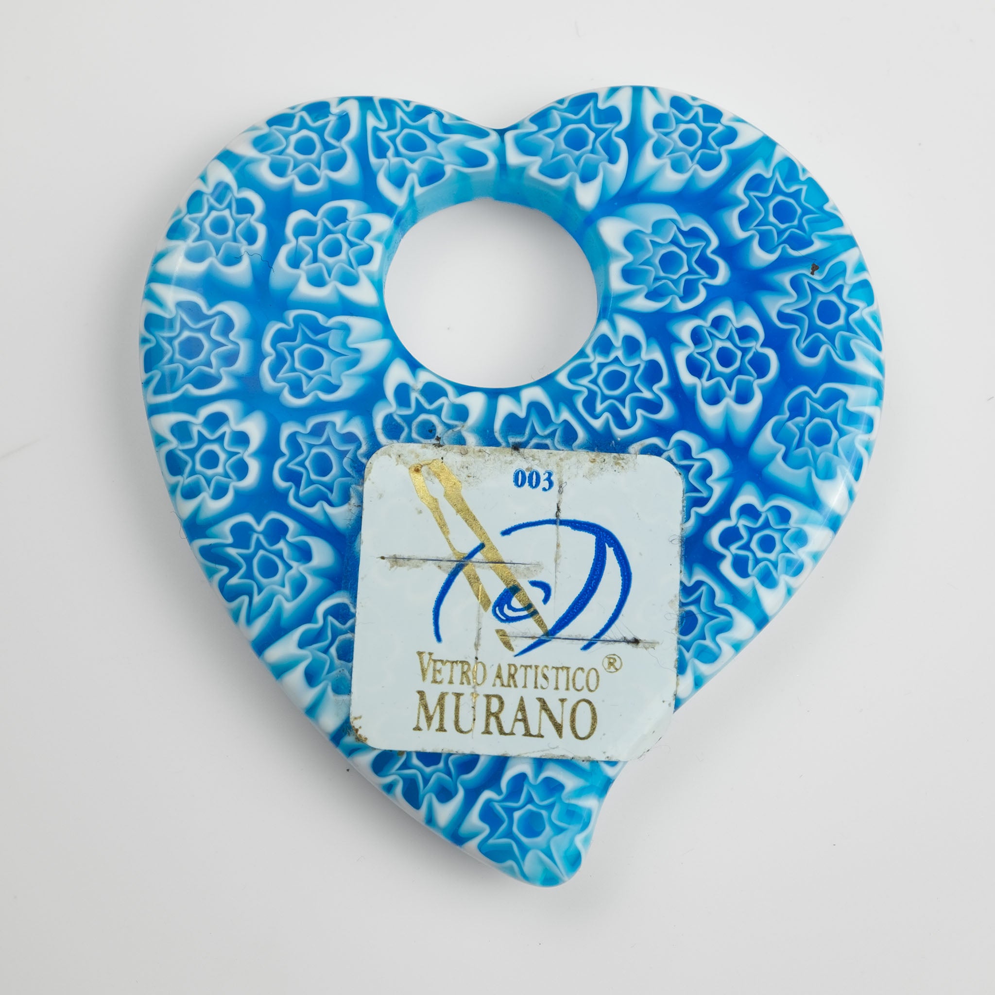 Genuine Vintage Venetian Murano Glass Blue Heart Pendant - Ercole Moretti